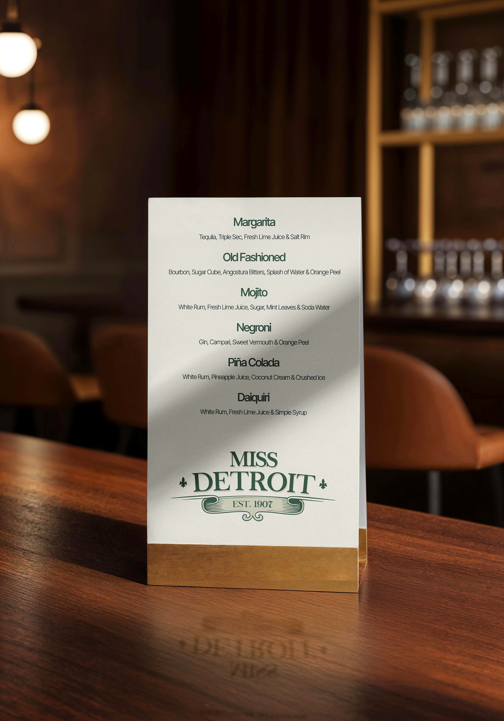 São cores que comunicam solidez, autenticidade e sofisticação — traduzindo a atmosfera dos bares clássicos, do couro e do metal, com luz e textura cuidadosamente medidas.