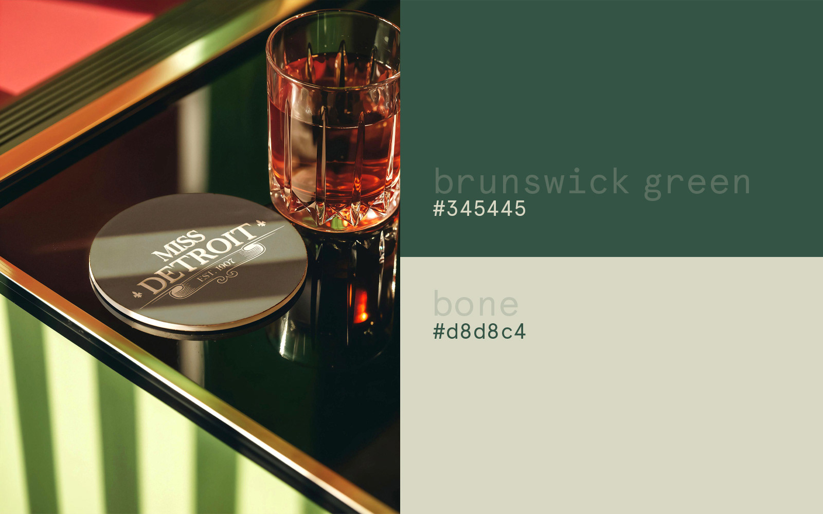 A paleta foi ancorada no verde profundo e no tom claro, reforçando o contraste entre herança e modernidade.